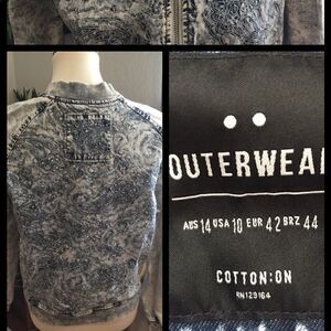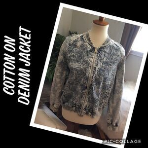 CottonOn Full Zip Long Sleeve Paisley Design Denim Jacket Size 10-NWOT