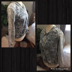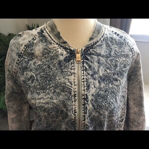 Super cute! Lightweight denim jacket with paisley like design throughout