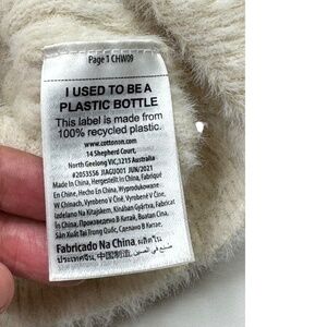 Design Details: Stylish cropped length with ribbed knit texture; features covered buttons made from 100% recycled plastic, showcasing eco-friendly craftsmanship