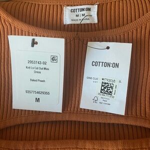 Cotton:On Rust Brown Ribbed CutOut Mini Sustainable Dress Long Bell Sleeve M NWT
