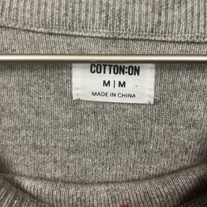 Cotton:On Womens Sweater Gray White M/M Crew Pullover Geo Hem Design Crop Trendy