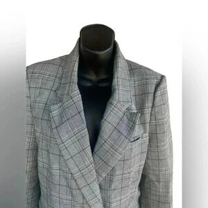 CottonOn womens plaid Blazer oversized double breasted, buttoned black taupe XS