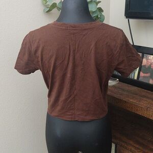 "The Baby" Crop Top color is brown high neck line short sleeve measurements in photos