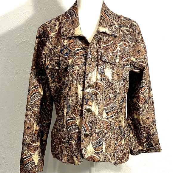 Cotton/Spandex Blend Jacket, Size Large, Geometric with Embroidery, Analogy, Stretch, Button Up