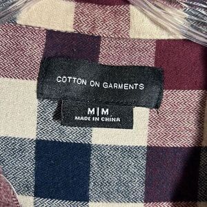 Cotton on Garments Maroon Navy Plaid Long Sleeve Flannel Button Down Shirt Men M