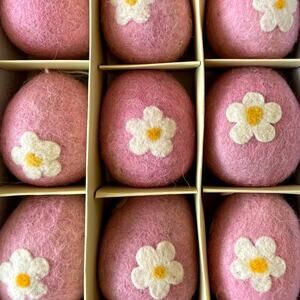 Add a touch of springtime charm to your Easter festivities with this delightful set of 9 Felt Easter Egg Ornaments. Crafted with care in India, these felt floral decorations feature a pastel pink floral daisy pattern that brings a colorful twist to your holiday decor. Each flower-themed ornament is designed to be a lovely addition to your Easter celebrations, perfect for adorning your home or gifting to family members. Hanging these felt eggs throughout your space creates a whimsical and festive atmosphere.