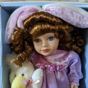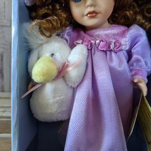 Cottontale Collection Porcelain Girl Doll Purple Dress Duck Bunny Hat w/Tag 2003