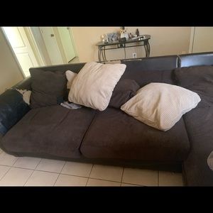 Has a few pieces of leather coming up, I do have a cover up that is iron able to go over it, great condition other then that. Comes with pillows included