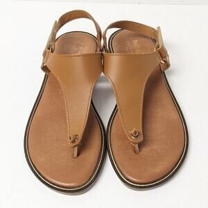 Couch and Four Calabria T-Strap Sandals, Brown Leather, Women's 6.5