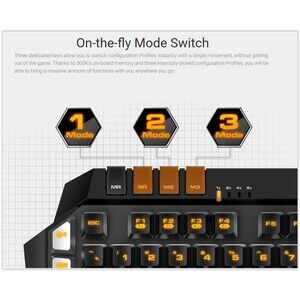There are four mode keys (MR, M1, M2, M3) across the top left of the 500K -- one which enables you to program macros on the fly -- as well as five G keys running vertically along on the left side, close to the WASD keys, that are tilted inward slightly to allow for easier reach. The spacebar is split into two keys, with the right-side key labelled as another G key.