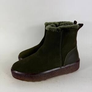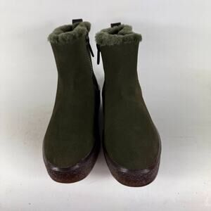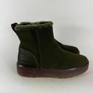 Cougar Broom Winter Ankle Boot Women's 7 Olive Green Suede Pull On Side Zip