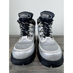 lace-up closure with black and white laces, a padded collar with the Cougar logo, and a chunky black lug sole.