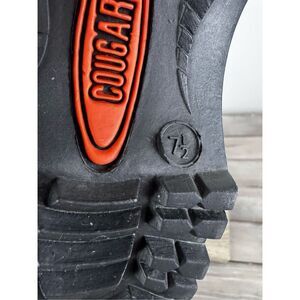lace-up closure with black and white laces, a padded collar with the Cougar logo, and a chunky black lug sole.