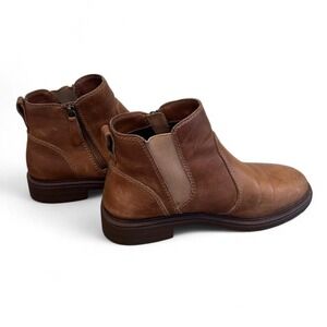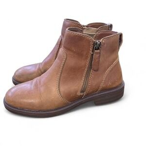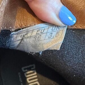 side zipper close. rubber soles, leather upper. overall good condition, see last photo for scuffing/discoloration in the toe area.