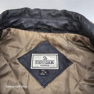 Cougar Leather Black Leather Bomber Jacket Insulated Quilted Lining Coat Mens XL