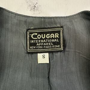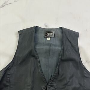 Cougar International mens' vintage 80s black leather vest, size S. It is free from any rips or stains. It measures about 20 inches across the chest and is about 22 inches long.