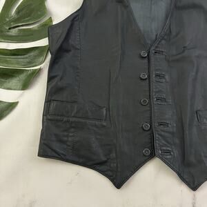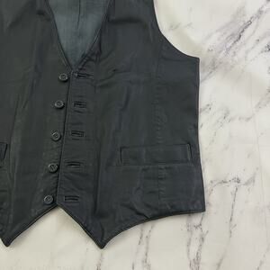 Cougar Mens Vintage 80s Leather Vest Size S Black Biker Goth Solid Buttons