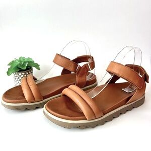 Cougar Nolo Sandals Cognac Brown Tan Leather Flatform Strappy Sawtooth Size 10