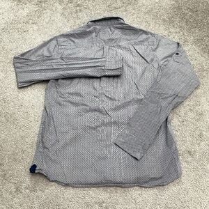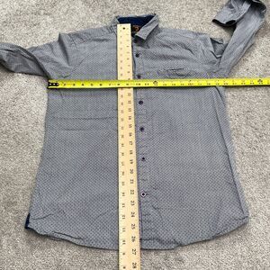 Cougar Slim Fit Button Down Shirt Mens Large Blue Pinstripe Diamond Print Cotton