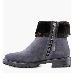 Cougar Kendal Faux Fur Waterproof Leather Snow Rain Bootie Color: Grey/Black Size: 8 NEW WITH TAGS ATTACHED Gear up for all-weather comfort in this cozy-chic waterproof bootie with plush faux-fur lining, a cushy molded footbed and a side-zip closure. Waterproof: protects against rain, puddles and slush to keep feet dry in wet conditions 1 1/2" heel 5 1/4" shaft Removable, cushioned insole with arch support Leather upper/textile faux-fur lining/rubber sole Imported