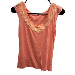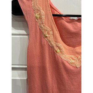 Couleurs De Rose Coral Pink Embellished Lace V Neck Sleeveless Top Sz Medium