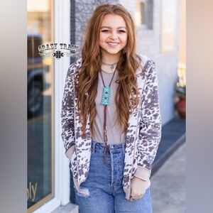 Cow print jacket light weight jacket perfect for a cooler summer might or taking to a restaurant in case you get cold