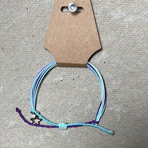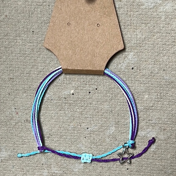 Purple, lavender, aqua, light blue, and white multi-strand bracelet with silver cut-out star charm. Pura Vida inspired and handmade by me. Offers