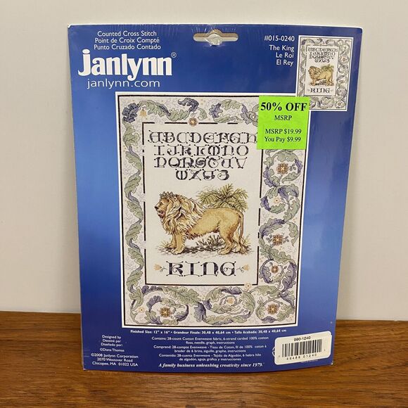 Counted Cross Stitch Kit THE KING 12" X 16" Janlynn ABC Sampler Lion 015-0240