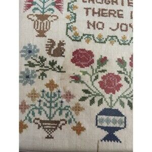 Counted Cross Stitch Vintage Hand Sewn Wooden Frame “NO JOY” 14x17