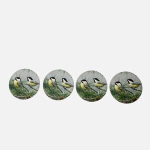 Counter Art Coasters Set 4 Chickadee Birds Pine Tree Absorbent Stone Cork Back