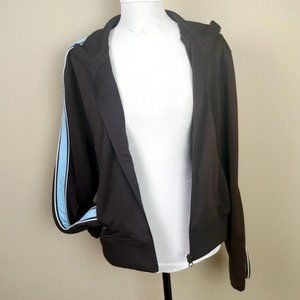 Counter Culture Brown Zip Up Jacket Blue Stripes