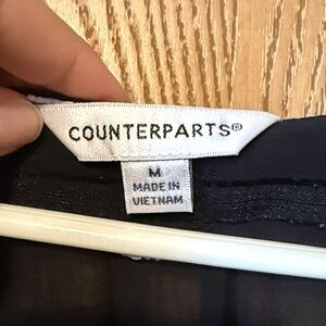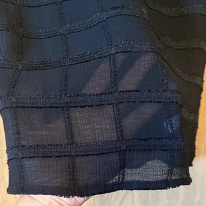 Chic black blouse with textured stripes. Short sleeves and V-neck design. Perfect for versatile styling.