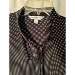 Counterparts Black White Polka Dot Blouse Top W Short Flutter Sleeve &Tie Size M