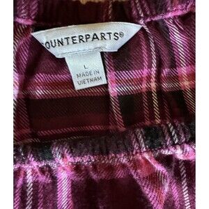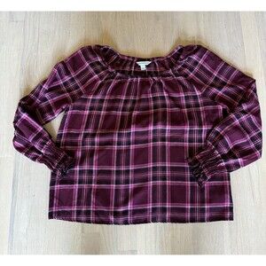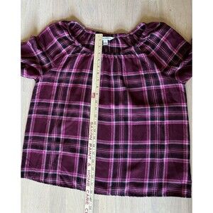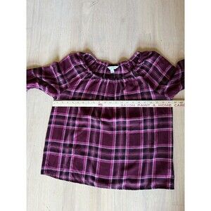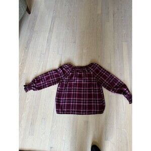 Soft and cozy shirt that feels like flannel. Excellent condition. The shirt has been washed so it will arrive in your home fresh and clean. It is a mix between purple and burgundy, Ships from the Midwest.