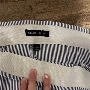 Chic trousers with blue and white stripes. Ideal for versatile styling.