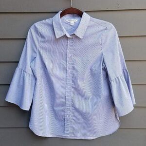 Counterparts Blue/White Stripe Button Down Blouse with Ruffle Sleeves Size Med