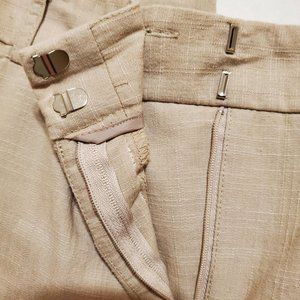 features: cute button detail at bottom legs. Two front pockets and two back pockets that are still stitched closed. zipper and clip enclosure