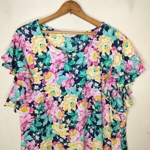 Counterparts floral flutter sleeve top. Size XL. Polyester. (23225)