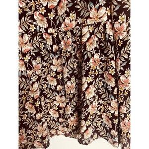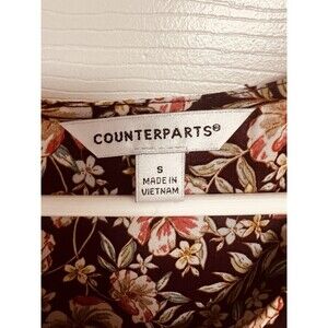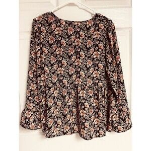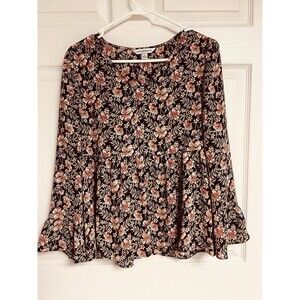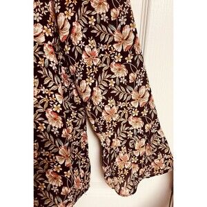 Counterparts Maroon Floral Long Bell Sleeve V-Neck Ruffle Blouse Size Small