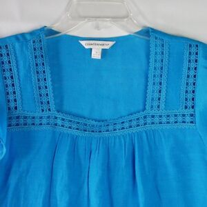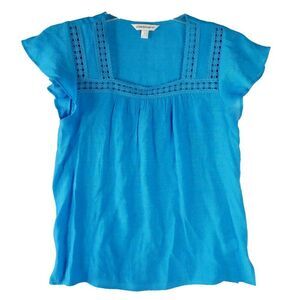 Counterparts Womens Size S Crochet Trim Boho Peasant Blue Blouse Top