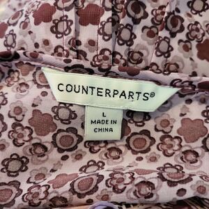 Excellent condition no flaws Counterparts sold at Macy's pretty print silky feel pullover peasant top with pleated detail and keyhole neckline. Lavender and purple size large