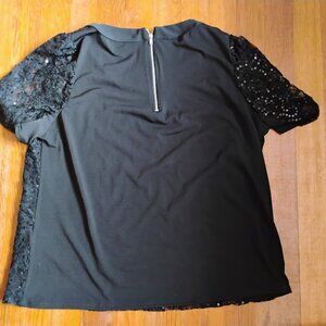 Countess Luann Black Sequin Zipper Back Blouse - Size M