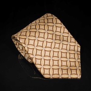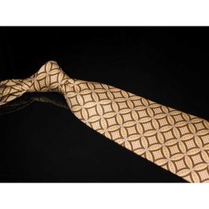 Countess Mara 100% Silk Tie Tan Brown Circle Pattern Mens Designer Necktie