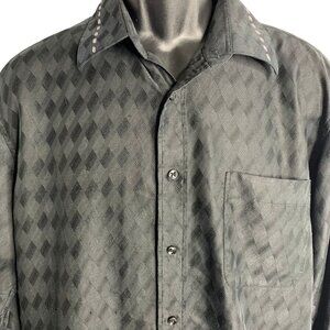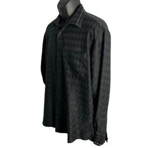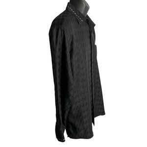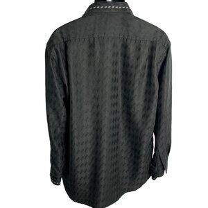 Countess Mara Long Sleeve Button Up Shirt L Black Silky Check Collared Pocket
