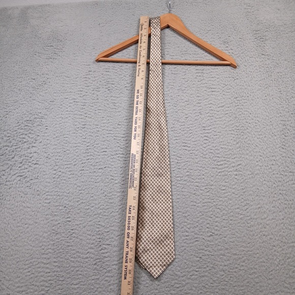 Keywords: necktie, silk blend, geometric, pattern, gold, brown, blue, designer, formal, business, accessory, classic, sophisticated