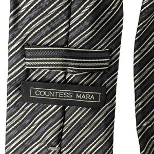 Countess Mara Vintage Silk Tie Grey Blue Classic Embroidered Logo 57”/3.5 Easter