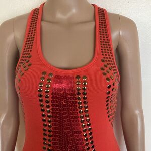 Countess Size M Red Orange Studs Sequins Party Club Wear Ribbed Sweater Dress