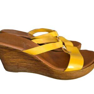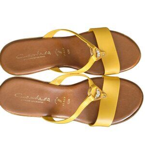 Countessa Italian Leather Wedge Sandals Size 10M With Rhinestone Embellis