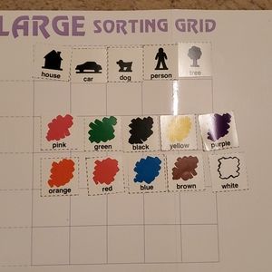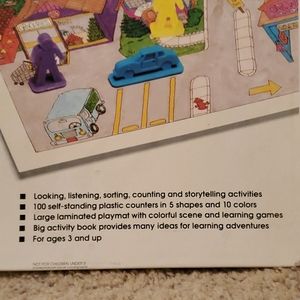 Preschool, educational, sorting, counting, each color has 10 pieces each, come with city map, other side is for counting and sorting, has color and shape cards so you can create your own learning games. Price is firm unless bundled with another item.