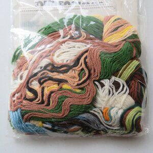 The kit includes: design printed in full color on 12 mesh 100% cotton 12 mesh interlock canvas, Persian wool yarn, cotton embroidery thread, needle and easy to follow illustrated instructions.